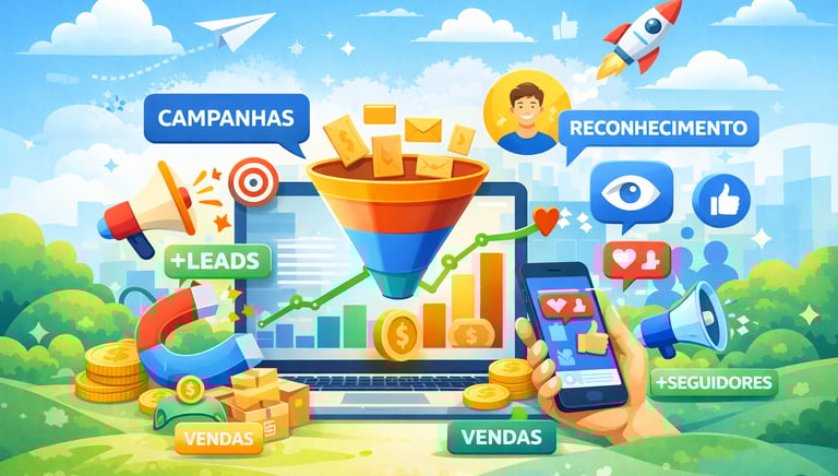 Campanhas focadas em leads, vendas e tráfego qualificado